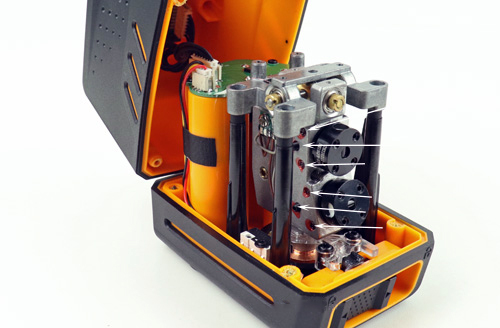Demontáž pouzdra je velmi jednoduchá: odšroubujte 4 šrouby ze spodní části a okamžitě získáte přístup ke všemu uvnitř, zatímco přístroj je plně funkční. Jde pouze o to, aby horní kryt zůstal na kabelu; například u laserového nivelačního přístroje Huepar BOX-1G lze kryt zcela odstranit.