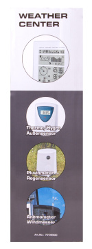 Bresser RC Weather Station is a radio-controlled weather station in a modern design. Radio-controlled clock and date display, pluviometer, anemometer, thermo/hygro sensor with temperature and air humidity display for indoor and outdoor. Air-pressure, moon phases and sunrise and sunset display, integrated storage for min. and max. data. All external sensors send the data via 433MHz with a distance up to 100m.