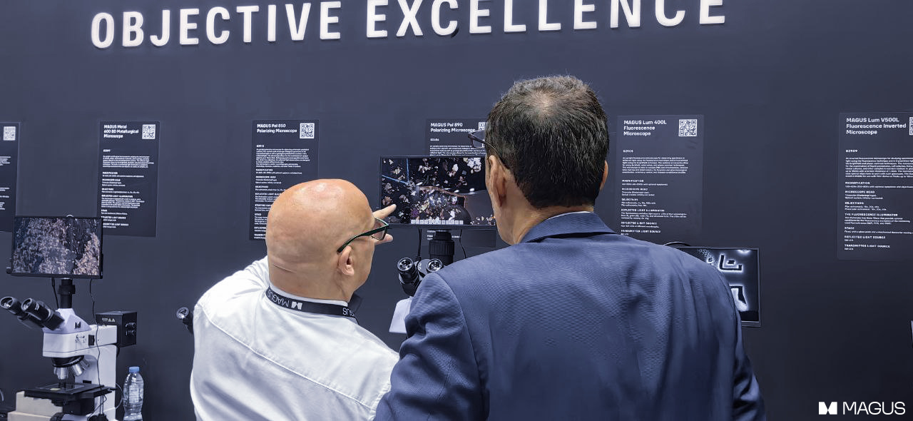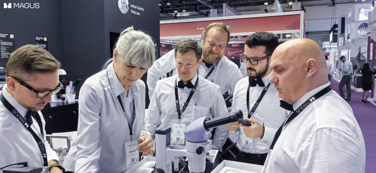 Stánek MAGUS přivítal během tří dnů konání veletrhu více než 5500 odborníků. Návštěvníci měli možnost prozkoumat naši nabídku produktů, vyzkoušet si je a položit dotazy našim odborníkům. Mnoho návštěvníků přišlo s vlastními vzorky pro výzkum. Ti tak mohli využít vysoké úrovně našich odborných znalostí a schopností řešit složité analytické úkoly. Mikroskopy MAGUS byly použity ke zkoumání široké škály materiálů, včetně briliantů, surových diamantů, ropy, textilií a tenkého petrografického řezu skutečného meteoritu, který poskytl náš tým. Na akci jsme tak plně prokázali všestrannost a spolehlivost našeho vybavení.